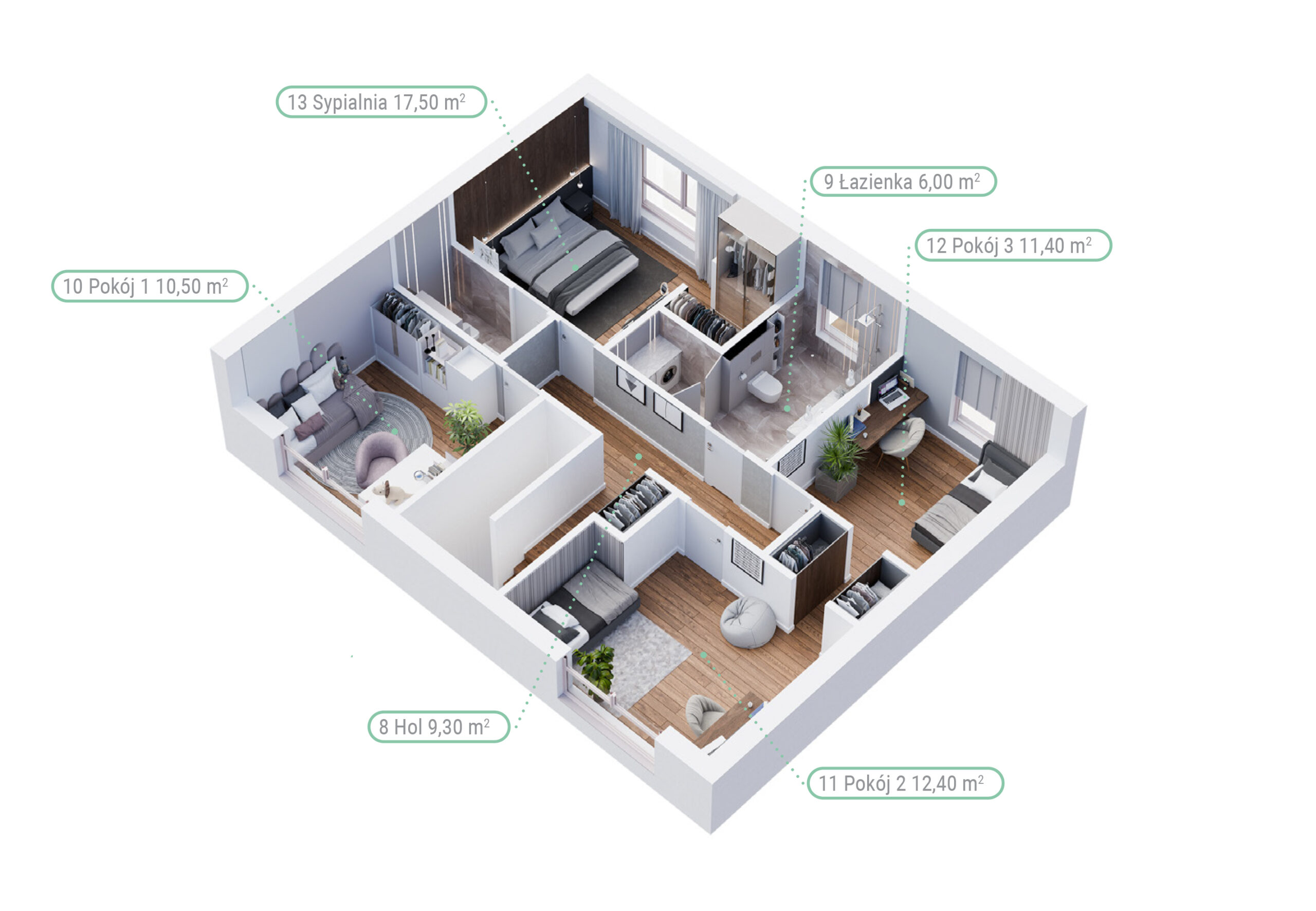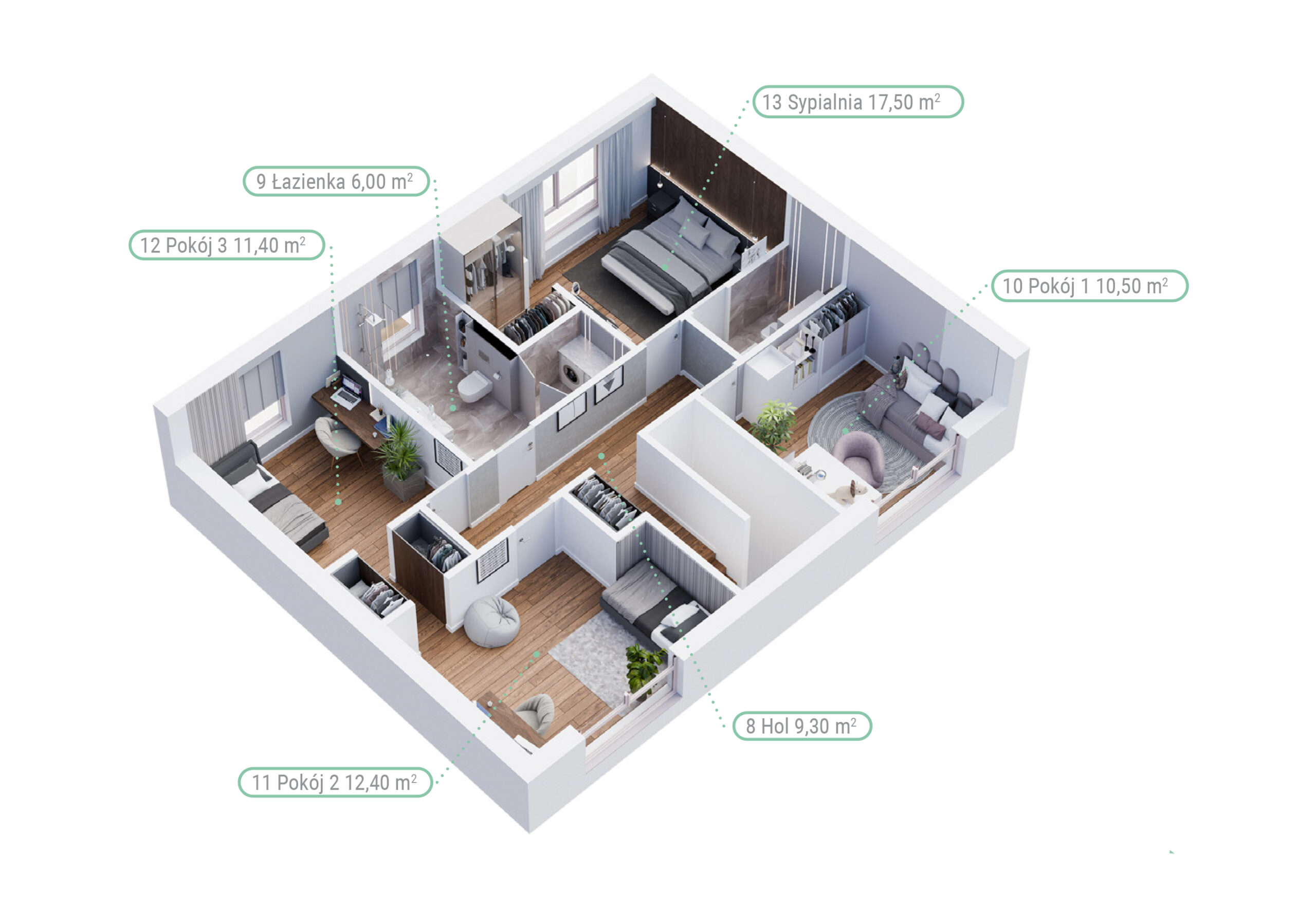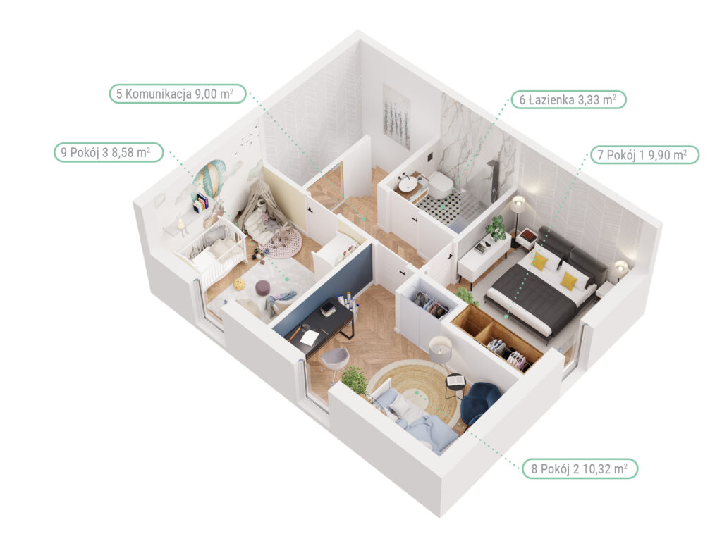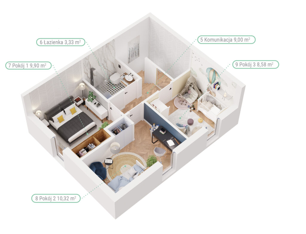 Każdy lokal posiada dodatkową, aż 40-metrową powierzchnię na poddaszu do własnej aranżacji, która daje możliwości adaptacyjne i powiększa funkcjonalność domu.